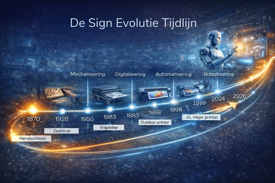 Daar komt bij dat de evolutie en groei van de print- en signindustrie in sterke mate wordt gedreven door technologische ontwikkelingen. Innovaties in machines en softwareoplossingen zijn steeds meer gericht op efficiëntie: het vergroten van productiecapaciteit, het verlagen van fouten en uitval, en het verbeteren van de inzetbaarheid van schaarse arbeid. Automatisering, workflow-software en data gedreven productie zijn allang geen luxe meer, maar een randvoorwaarden om concurrerend te blijven.