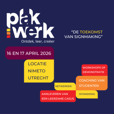 Plakwerk is een jaarlijks SIGN evenement georganiseerd door Nimeto, De Rooi Pannen en het Deltion College. Na het succes van afgelopen jaar zal dit jaar de 2e editie plaatsvinden in Utrecht bij Nimeto op donderdag 16 en vrijdag 17 april 2026. Vanzelfsprekend ondersteund FESPA Nederland dit evenement als betrokken partner voor vakeducatie van de industrie.